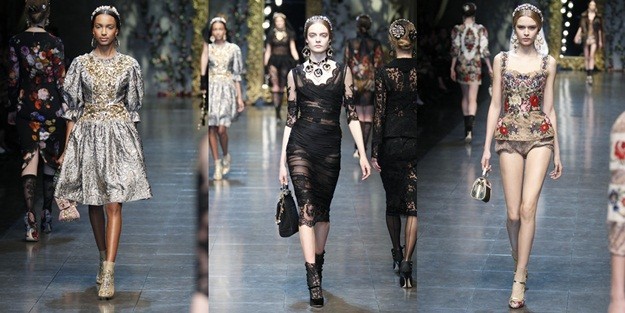 Hoy tuvo lugar el desfile de los modistos Domenico Dolce y Stefano Gabbana en la quinta jornada de la “Semana de la Moda Femenina de Milán”, en el cual pudimos apreciar los diferentes modelos para la mujer cubiertos en su mayoría de flores y encajes al estilo barroco en combinación con algunas prendas en transparencias.